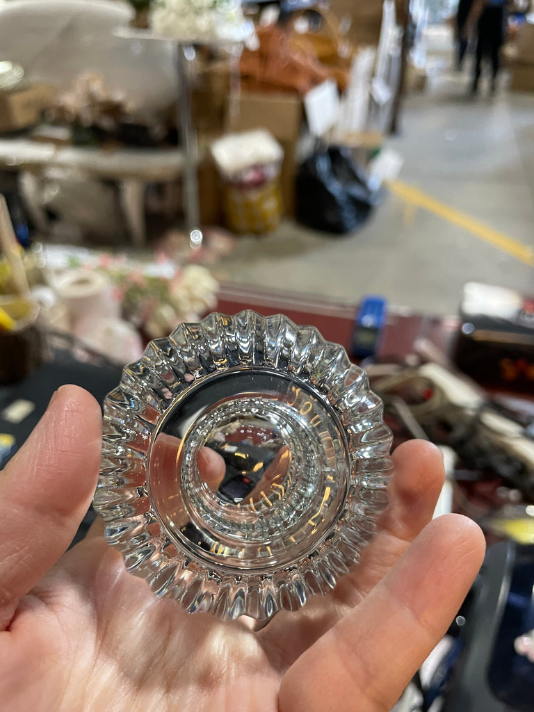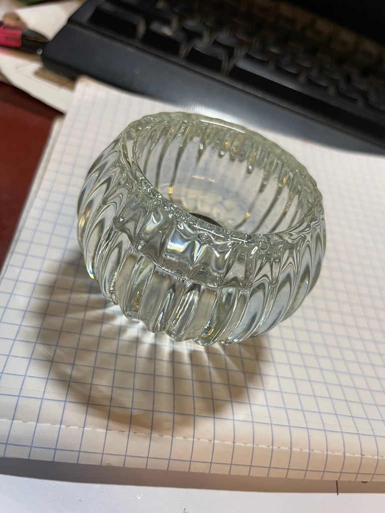 New 1.75” H Glass round CANDLEHOLDER striped 2 way votive taper donut nugget