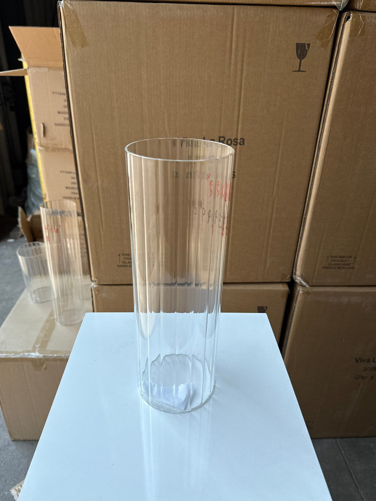 MT4-12 Ribbed Glass 4”x12”h Cylinder Vase Clear Thin Machine made